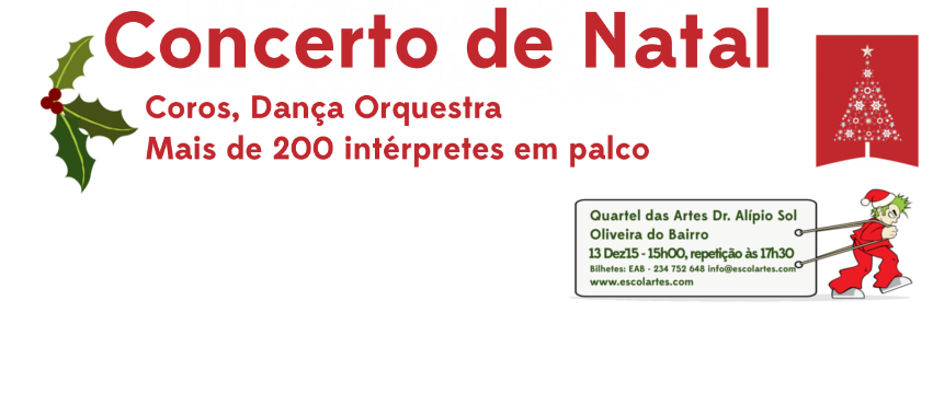 A Escola de Artes da Bairrada realizará os seus Concertos de Natal de 2015 no Quartel das Artes em Oliveira do Bairro no dia 13 de dezembro, com apresentações às 15h00 e às 17h30.